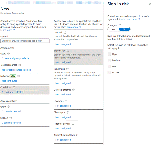 By going to Conditional Access, like before, you can create a policy based on User or Sign-in Risk, as here: